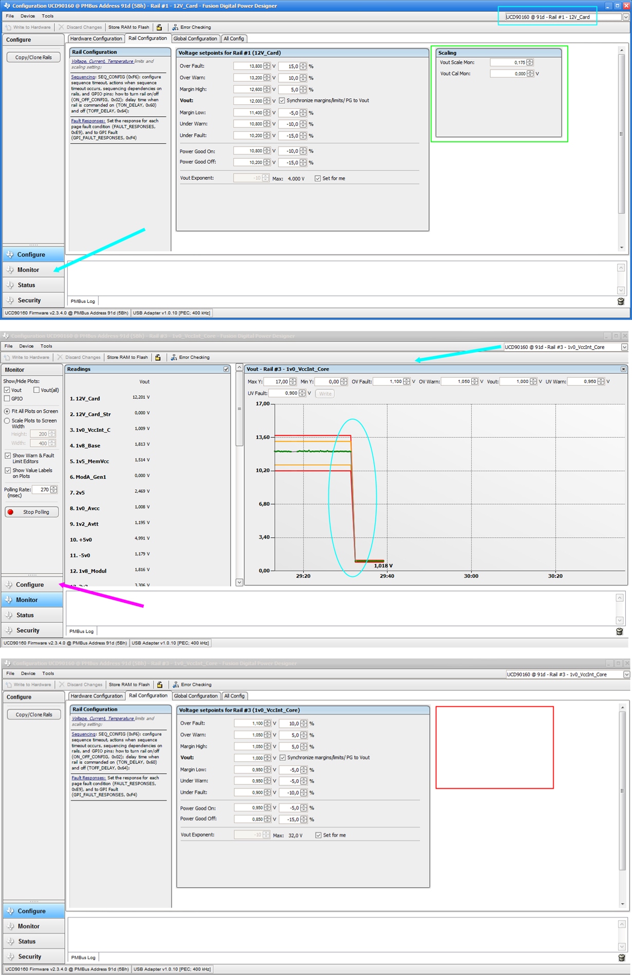 https://e2e.ti.com/support/power-management-group/power-management/f/power-management-forum/605587/ucd90160-scaling-settings-of-rail-configuration-tab-disappears-after-monitoring-voltages-fusion-v7-0-11