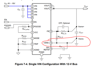 在典型应用中、我看到反馈电阻器网络连接到 PGND 而不是 AGND。 我本以为这是另一种方法。 您能不能在此处评论为什么不首选 AGND?