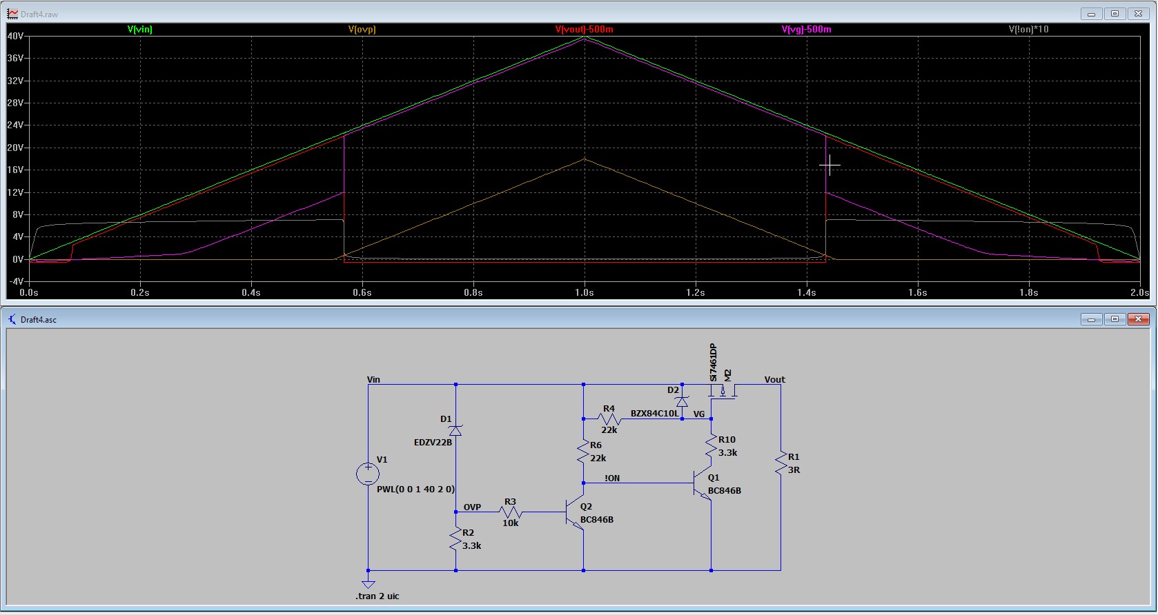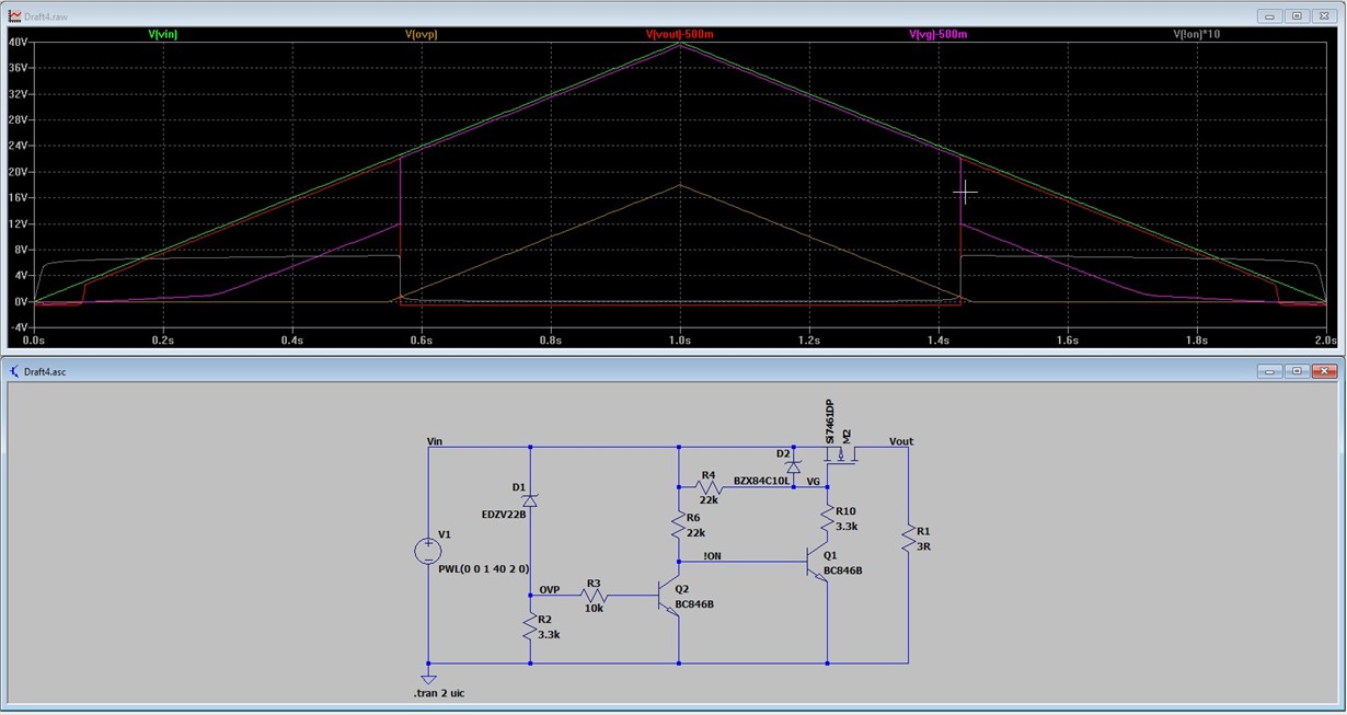 也许您可以参考适用于汽车应用的负载突降过压保护电路。 它更准确、更可靠。 对于您的设计、齐纳二极管的额定电流是多少? 您需要让高于7A 的短路电流熔断保险丝。