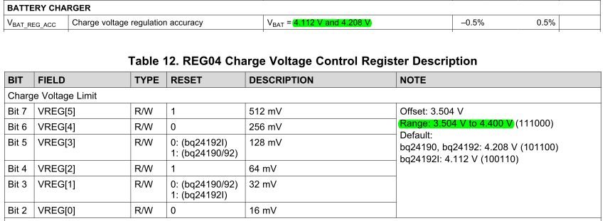 现在、客户已经评估了 bq24190、他们要求在3.6V 设置时提供充电电压调节精度、因为 电气特性仅在4.112V 和4.208V 时提供+/- 0.5%的电压。 此时、他们计划将充电电压设置为3.6V、以便为 Olivine 型电池充电。