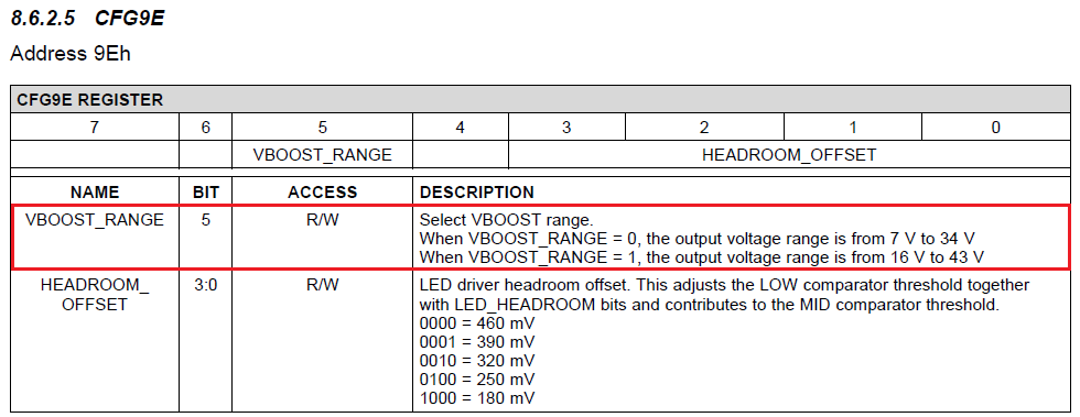 如果 VBOOST 在客户的应用中为21V (典型值)、建议使用哪种 VBOOST_RANGE=0或 VBOOST_RANGE=1?