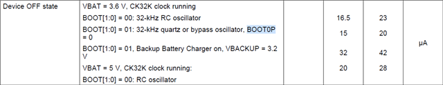 是;这些值也适用于 BOOT[1:0]= 10;如果 CK32K 时钟正在运行、消耗的~40uA 电流应该正常。