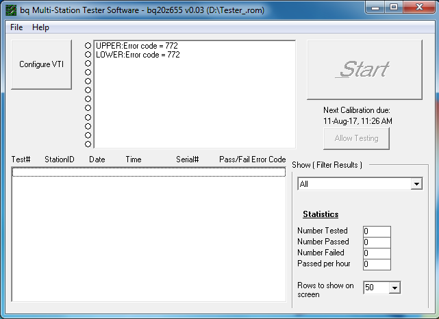 当我运行电台设置时、我能够看到两个 HPA169、但"Cal board Found (找到校准板)"显示为灰色。 "闪烁 LED"不起作用。 我添加黄金 ROM、选择合适的器件(bq20z655)、完成并保存。