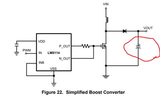 此外、升压转换器的输出电容通常高于 UF 电平、根据 LM5114规范、CL 变化1000pF ~ 10000pF 远低于 UF 电平