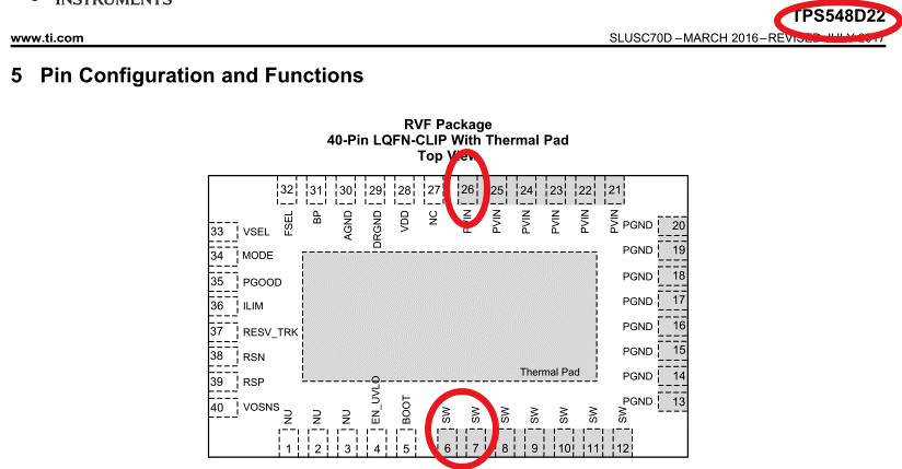 我的客户正在考虑在 TPS548B22和 TPS548D22之间共享焊接尺寸。 但他们发现引脚6、7、26不共享相同的引脚定义、我的问题是这两个 IC 是否可以在板上共享相同的封装模式?