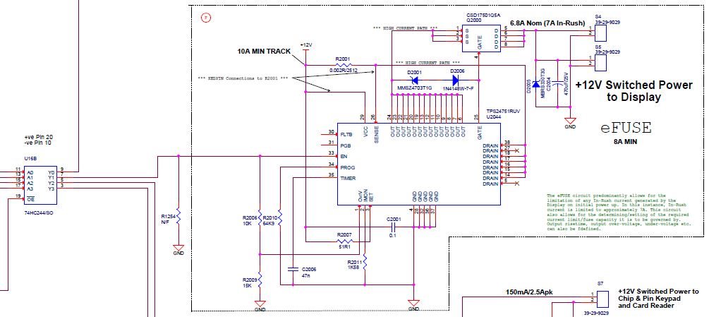 我尝试使用 TPS24751作为电源输出控制、以控制由12V 电压供电的大型 LCD 显示屏。 在正常工作条件下、显示屏大约需要6A 至8A 的电流、但在初始上电时、浪涌电流会很大、大约为26A!