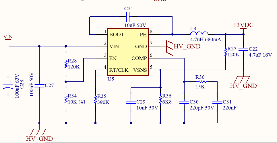大家好、我使用 TPS54062来构建直流/直流降压稳压器。 我与大家分享我绘制的原理图。 它的输出电压应该是稳定的、但当我改变输入电压时不是稳定的。 当我施加30V 直流输入电压时、TPS54062提供12.7VDC;当我施加20V 直流输入电压时、它提供10V 直流。 问题可能出在哪呢? 我应该寻找什么? 谢谢。