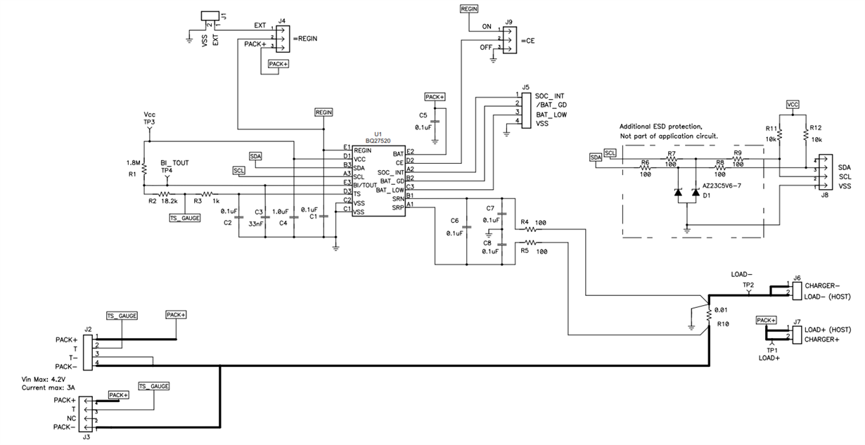 感谢你的帮助。 我听从了你的建议,“要将电量监测计参考 BAT-而检测电阻器的另一侧将连接到负载”。 现在、我测量正确的电池电压、即使在电流流流过时也是如此、非常好、谢谢。