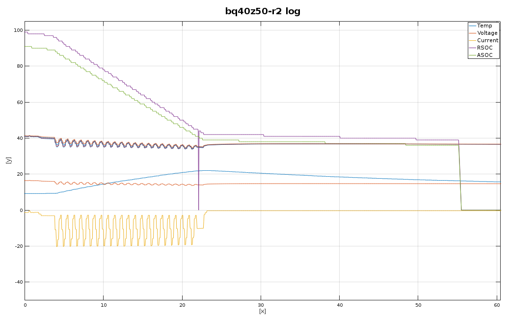 我有来自另一个放电的 log、当以低电流放电时、SOC 下降到0%、并且电池正在冷却。