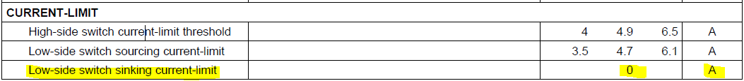但是、数据表中的其他位置显示低侧开关灌电流限制为0A。