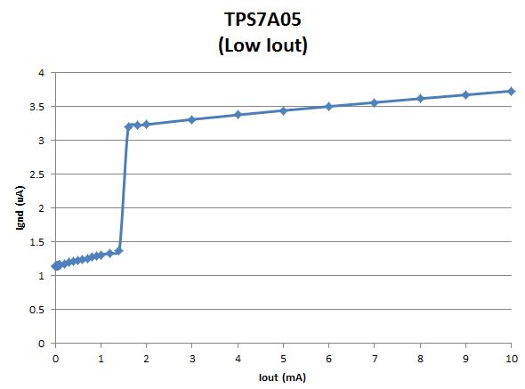 我们是否有一个0 < Iout < 10mA 时该器件上的接地电流图。