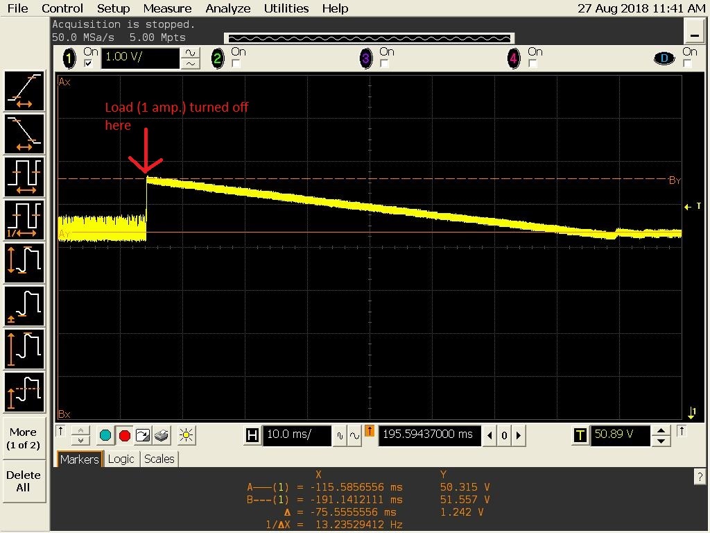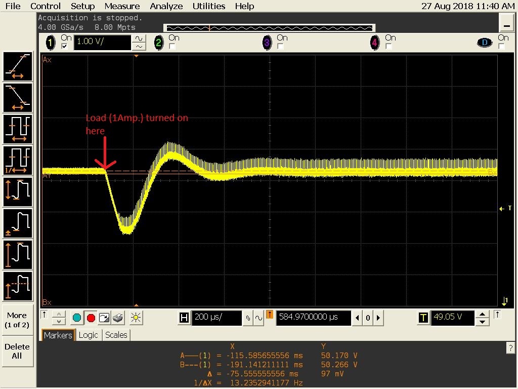 我使用的是 EVM TPS43060EVM-199,我的负载是开关类型(开:- 5ms,关:- 5ms,最大1.2安培)
