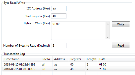 请参阅此应用手册 http://www.ti.com/lit/an/slua467b/slua467b.pdf 并随附由 I2C 监听器截取的图像。