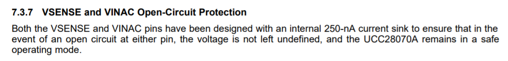 那么、这个250nA 电流源如何实现 VSENSE 开路保护??