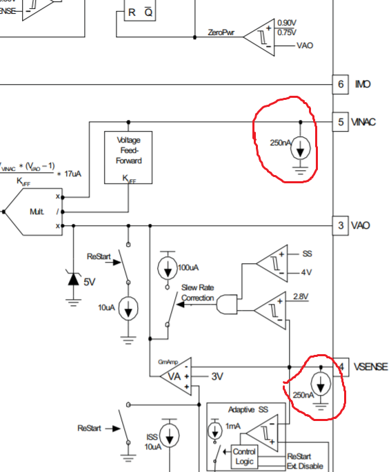 如果 VSENSE 保持断开状态、则250nA 会将 VSENSE 拉至0V、正如您所说的那样。