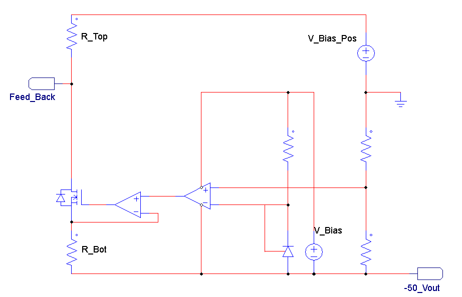 他们希望避免使用 TL431/光耦合器组合、因为输出电压为-50V、并且必须添加大量额外的电路才能使其正常工作。  由于它不是隔离式输出、因此运算放大器应该能够满足这一要求。 他们确实使用了 TLVH431并使用更高电压的晶体管对其输出进行了电平转换、从而尝试了这种方法。  它们具有控制环路和电路寄生效应的一些混合响应。 他们更愿意回到运算放大器方法。