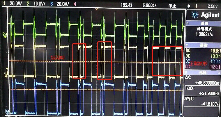 3、CH1是 SW 开关波形、CH2是上管驱动波形、CH3是下管驱动波形