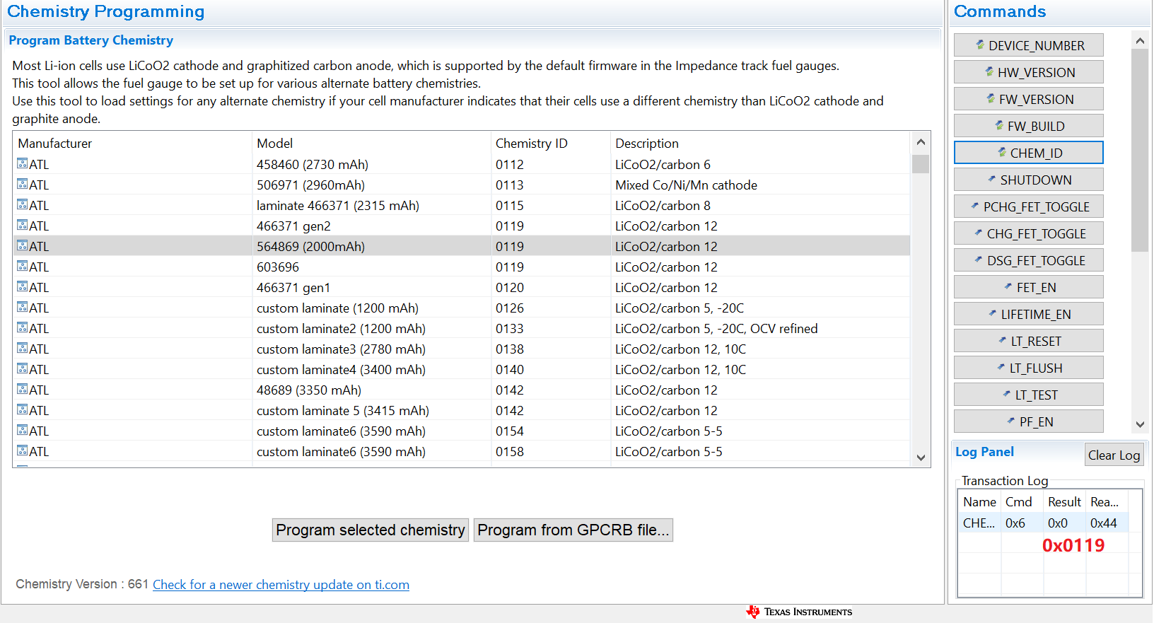 如上图所示、我对所选化学成分进行了编程、我可以正确读取、但寄存器视图中未正确反映满电量。