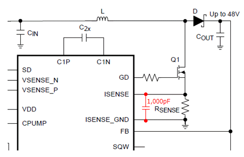他们正在考虑 ISENSE 的噪声滤波器。 如果他们在 Rsense 的服装中增加了1、000pF、这种用法是否有任何串行器?