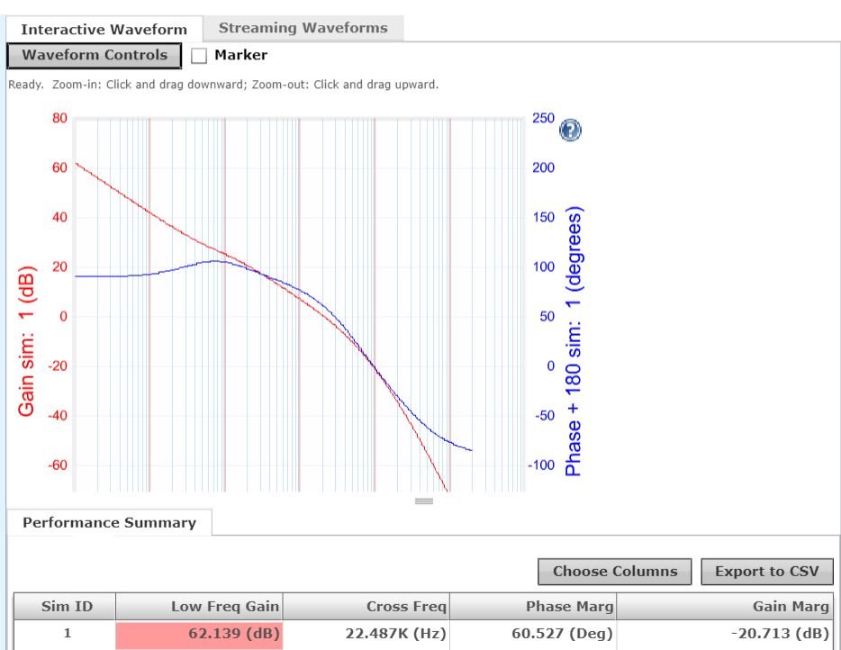 我已经重新补偿了、并找到了与您相同的结果。 它建议了相位裕度和增益裕度不足的器件(我们的工具不足以满足您的应用需求)。