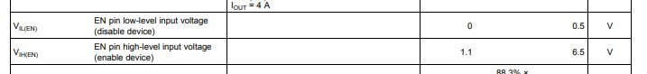 1) 1)看起来 EN 引脚定义可能存在一些差异。 以下是根据数据表提供的 EN 引脚 VIL 和 VIH 参数的快照: