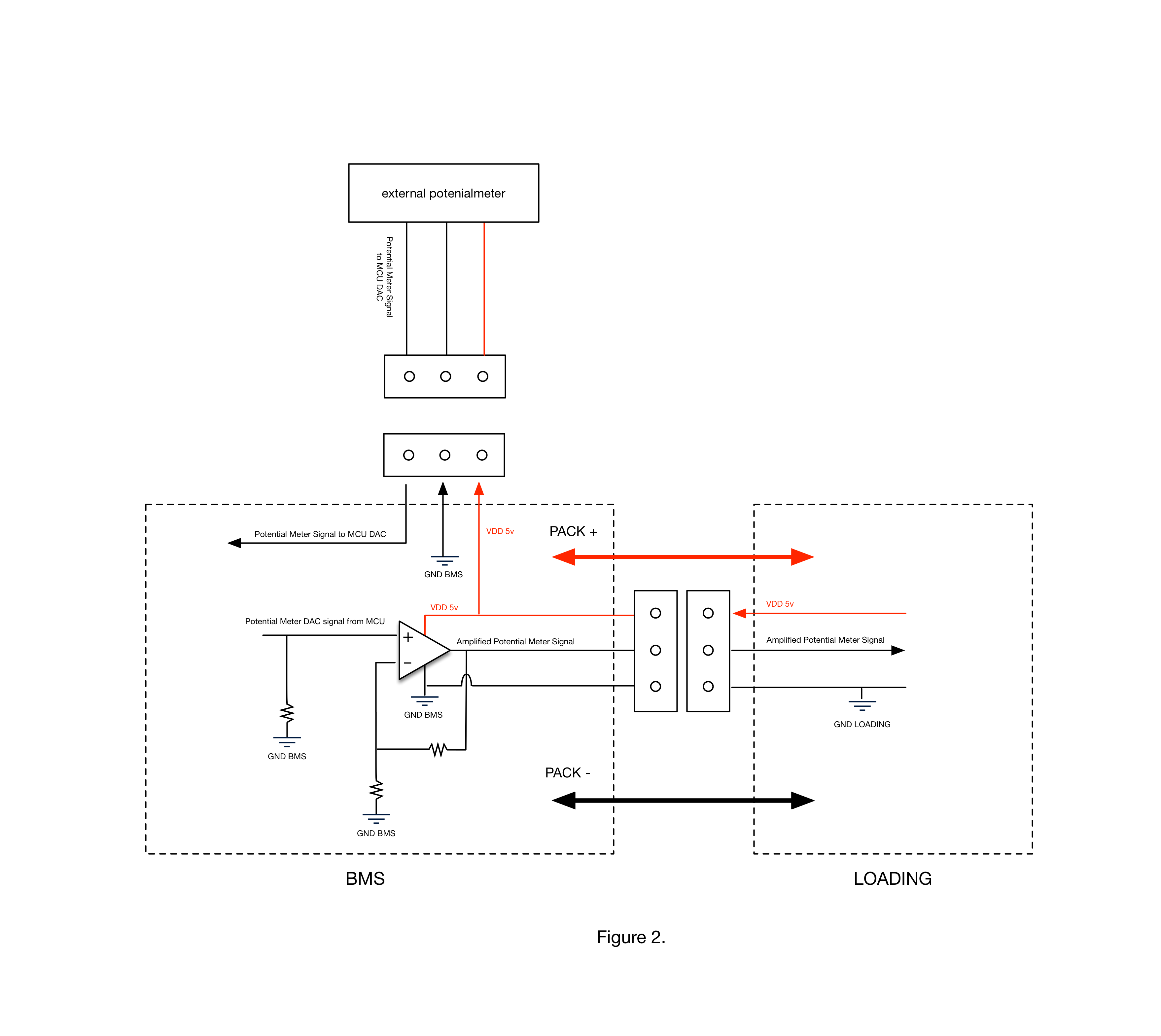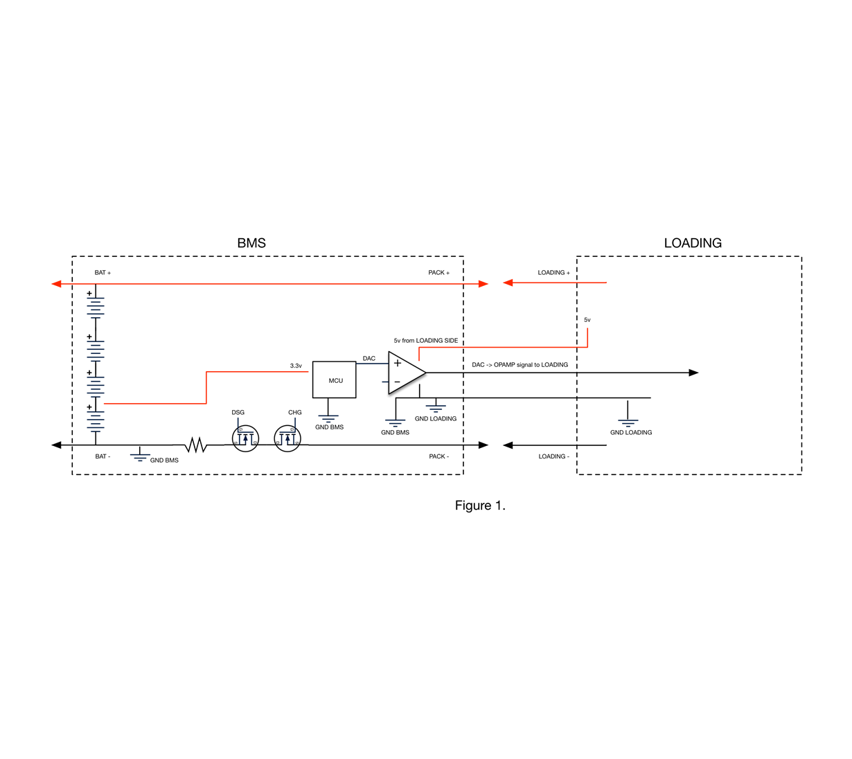 我想升级 BSM、将外部电位计作为输入并进行数据按摩(图2、)、而不是控制器/负载侧的外部电位(图3)、但将两个控制信号连接在一起意味着必须将两个接地连接在一起(图1)。 想象一下、当 PACK-和 PACK+连接到负载尖峰时、由于负载接地等于 BSM 接地、我的现有设计是 CHG 和 DSG 都由 MCU 连接、因此在没有 MCU 命令的情况下断开路径以防止尖峰或浪涌电流、 现在测量放电电流看起来也很奇怪。