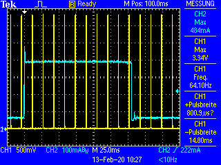 我预计 LM5066i 的值将是相同值的5 (或6)倍、因为通过 I2C 在5或6次读取期间会出现电流脉冲。 该电流脉冲的长度应~80ms。 这是完美的,但不幸的是,我得到了一些非常不同的东西...