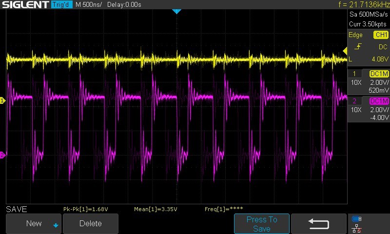 当电路负载约为200mA (电子负载)时、一切都保持稳定、直到它下降到低于3.4V 的输入电压、输出电压将崩溃至大约2.1V、并且电路开始发出高频嗡嗡声。 这只能通过打开输入电源来重置,然后再次打开,以大于3.4V 的输入电压开始运行。