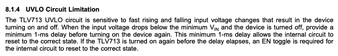 有关 UVLO 电路限制的信息、请参见 TLV713数据表。