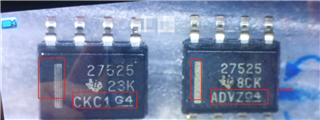 器件型号:UCC27525 该产品两侧的标记信息与我们样片的标记信息不一致