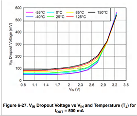 在典型使用案例中、此器件的特点是 Vin = Vout + 0.3V。  但是、随着 Vin 的增加远远超过 Vout 以上300mV、图6-27显示您需要更大的余量电压。