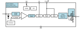 器件版本是"01"选项、其中感应输入阈值为800mV。 我目前有一个71.5K 的分压器来馈送 SENSE 输入和从 SENSE 到 GND 的4.99K。
