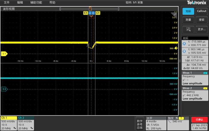 2) 2) 当温度是-35℃ 时、上电一段时间后有些芯片掉了。 波形如下所示: