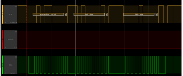 我已经使用 TPS61177A 创建了一个小型原型板、可以按预期为 LED 阵列供电。 我现在希望能够通过 I2C 更改某些参数、但保持获得如下所示的 NACK 响应。 我已经将 I2C 配置为以100KHz 运行、并且我已经尝试了上拉电阻器的各种排列。 是否有我漏掉的某种配置?