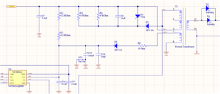 大家好、我用 UC2842 IC 设计了一款反激式转换器。 设计基于 TI 的工具和参考原理图、但有一个问题、交流板的保险丝持续烧写。 当我禁用保险丝时、R2-R5电阻器会很大。 当我禁用它们时、R15电阻器爆炸。