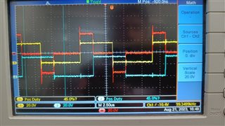 黄色和蓝色波形分别是 DPWM0A 和 DPWM1A 的输出。 给出了一定的相移以获得大约40%的相移。 但正如红色波形(DPWM0A - DPWM1A)中所示、它是不对称的。