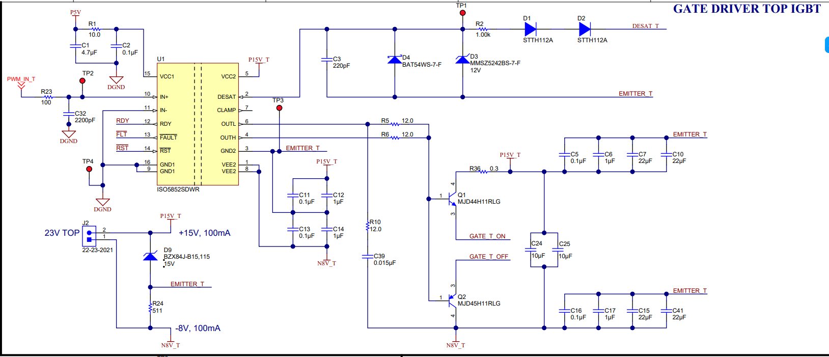 我们使用 ISO5852S 驱动 IGBT 并参考此电路原理图: