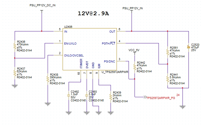 客户在其电路中使用 TPS2597作为输入电路保护。 它们的输入为12V、原理图如下所示: