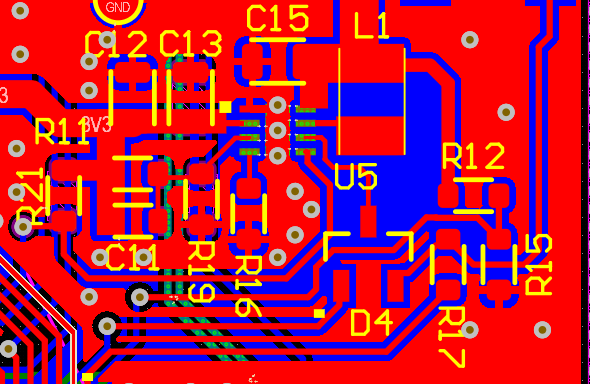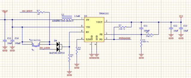 我使用了数据表规格。 下面是 PCB 的原理图和部分。 L1为 Abricon 1R5。