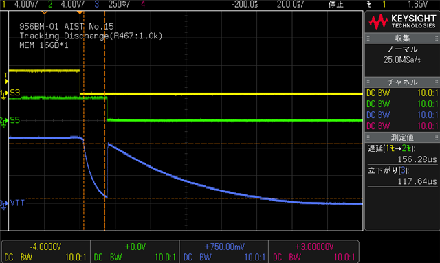 看起来这可能需要处理放电跟踪和非跟踪的方式、以及可能是功率状态控制。 跟踪模式可使 VDDQ 放电、非跟踪模式可使 VDDQ 和 VTT 放电。 由于 S3在 S5之前关闭、VTT 关闭并进入高阻抗电源状态、并且会悬空、但不会灌入/拉取。 但当 S3和 S5都关闭时、VTT 会关闭、但处于放电状态。 这可能就是您看到发生这种情况的原因、因为它进入这个浮点和高阻抗状态、因为 S3关闭、不会灌入或拉取、所以我们可以看到骤降、然后当 S5关闭时、我们看到器件放电正常。