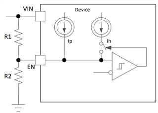 此外、我们还注意到数据表中关于可调输入欠压锁定的说明(第7.3.4节)、但 对于计算 Ren1和 Ren2的公式存在疑问。 Vstart 是否意味着设计输入电压、Vstop 是否意味着设计输出电压? 对它们的解释不清楚。