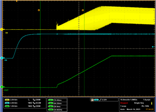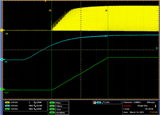 启动电流的峰值也取决于负载。 但您共享的波形似乎并不正常。 同样、它也取决于软启动时间。 例如、如果您使用较少的软启动时间在高负载电流下输出高 Vout、则浪涌电流会更大、但电流限制也会限制启动期间的电流。谢谢!