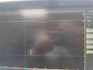我想从 BQ24172的角度来看那不是过压状态、从电池的角度来看它是过压状态。 我认为图片中的下降沿可能是电池保护电路(电池中的电路)运行、然后电池检测开始的时间。 上升边沿可能是重新充电 开始时间。 但我不确定这是否正确。