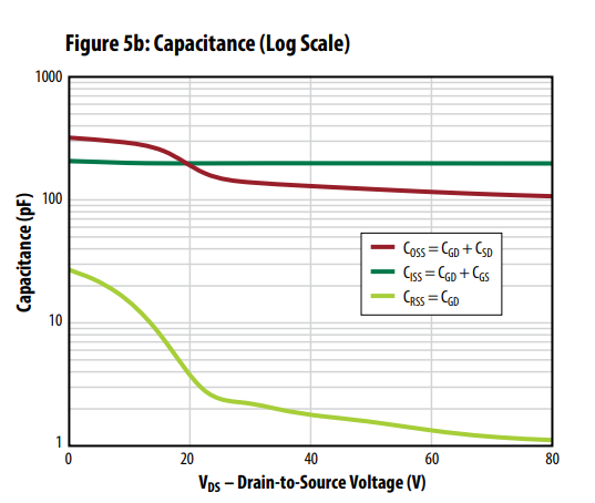 考虑到 I = C * dv/dt、上升时间(dv/dt)将取决于 IDS/IDS Coss。 红色波形具有大约1pF 的、而蓝色波形具有300pF 的 Coss。 在此处导致问题的另一个因素是电流取决于 VDS、因此会随 VDS 而降低。