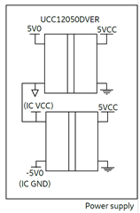是的、您可以使用两个 UCC12050通过上面显示的配置来生成+5V 和-5V。 不要忘记在输入和输出侧放置 HF 去耦和旁路电容器。