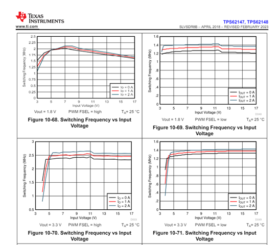 请找到数据表第30到32页、查看如下所示的开关频率曲线: