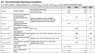 在数据表第6.3节中规定平均 电流0.3uA (如下所示)