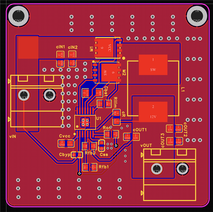 最后、我可以去尝试2、但我需要改变什么? 这是否是组件的问题(例如、我怀疑输出电容器)、布线是否放置正确? 或者所使用的电感器不是理想电感器、我必须将其替换为可用的电感器。