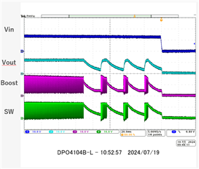 当电源被切断时、VIN-FET VOUT 电压的裕量不足、同时输入电压(18V)下降、输出电压(12V)下降。