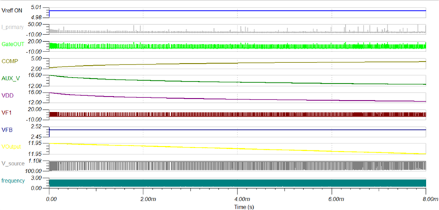 这是1kV 输入和15V 输出的 UCC28C59仿真。